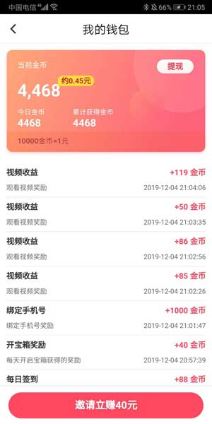 魔视 分类:阅读赚钱 大小:22.78 MB 开发者:上海诗芮电子商务有限公司下载次数:3256最新版本:1.0.0.1热度: 作者: 发布: 2020-03-14 10:13:56 支持: 安卓 Tags: 安卓下载 APP截图 应用介绍 魔视,一款看视频、分享视频也能赚钱的短视频APP。登陆填写邀请码106195就送3毛,可拿更多奖励,可立即提现秒到账。这里不仅有有趣好玩的短视频还有多种趣味玩法,让你在娱乐中还能收获零花钱。赚钱休闲两不误,用心为你推荐有魔力的视频,还有更多精彩活动等你参与! 联系官方 官方QQ群:579849990,微信客服:xiaotangyuan4568 最新应用 趣头条 泡泡头条 麒麟网 抖音极速版 彩蛋视频 贝壳转 蚂蚁看点 闪电盒子 看点快报 资讯随享